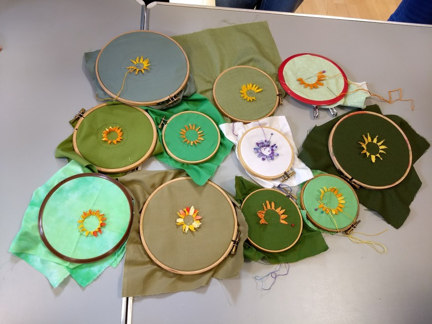 Exeter Creative Stitchers are a group of people who enjoy stitching; embracing embroidery and textiles of all types. We are keen to share our knowledge and encourage newcomers to have a go.